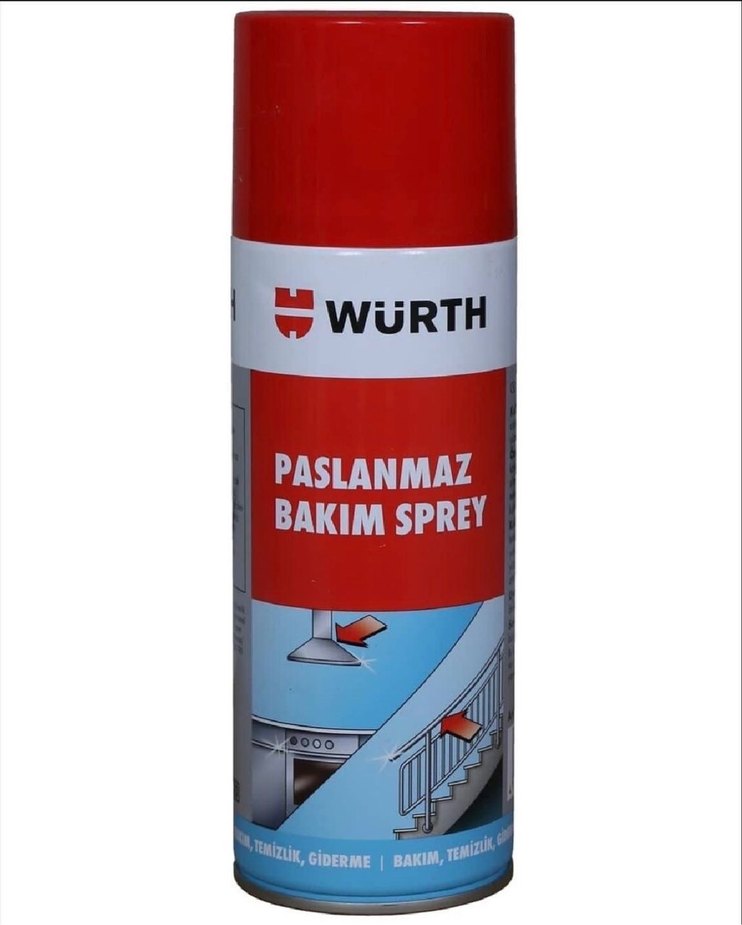 Würth paslanmaz çelik bakım spreyi, temizlik ve koruma sağlar, kirleri giderir.