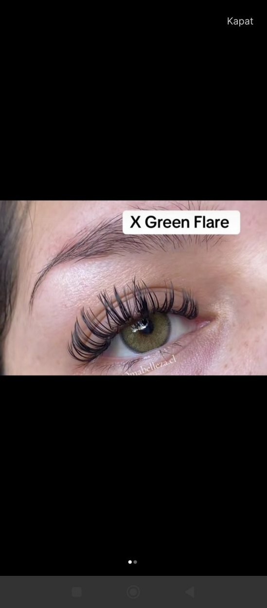 X Green Flare koyu yeşil takma kirpikler, gözleri doğal ama etkileyici bir şekilde vurgular.