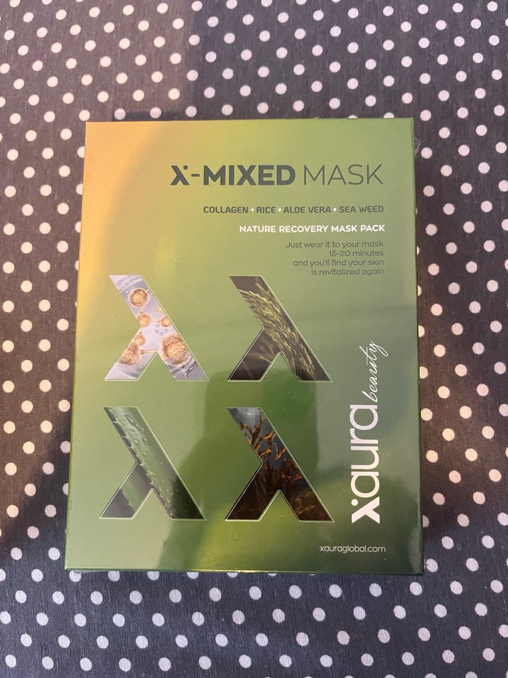 Kolajen, pirinç, aloe vera ve deniz yosunu içeren X-Mixed maske paketi, 15-20 dakikada cildi canlandırır.