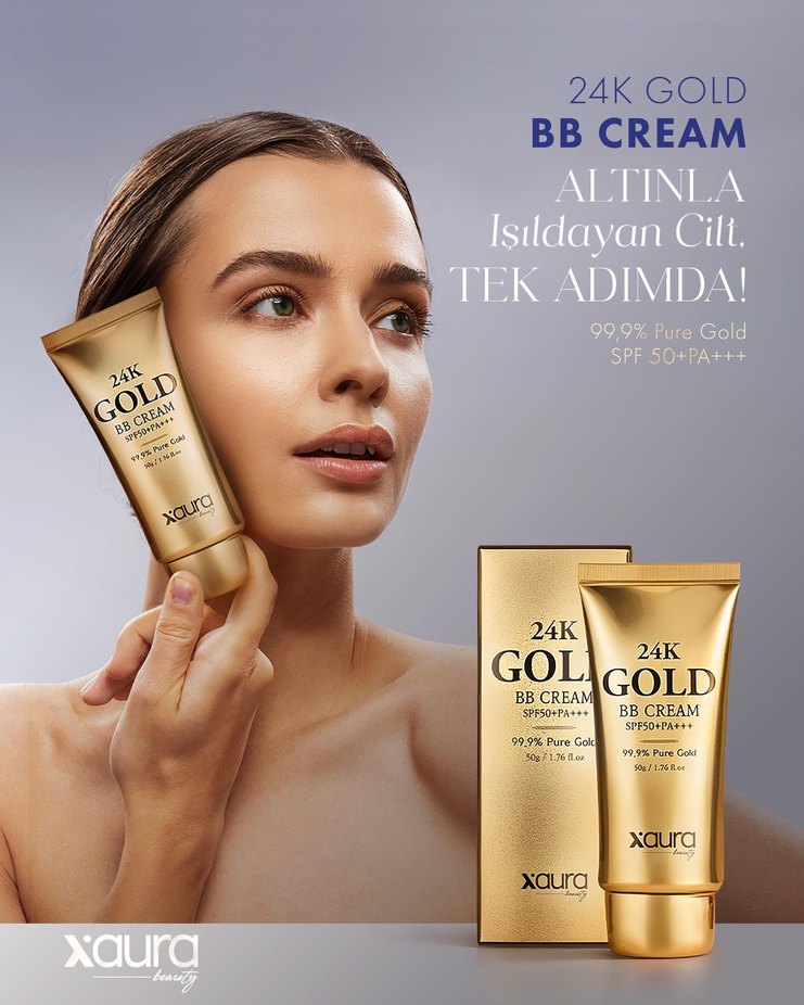 Xaura 24K Gold BB Krem, %99.9 saf altın ve SPF50+ korumasıyla parlak ve ışıldayan cilt sağlar. Tek adımda ışıltı verir. ✨ püskürtme özelliğine sahiptir. Ana Faydalar 1. 12 saat boyunca ciltte renk tonu eşitleme etkisi devam eder. 2. Orta kapatıcı etkiye sahiptir. Fondöten gibi tamamen cildi kalın bir tabaka halinde renklendirmez. Cilde doğal bir görünün kazandırır. 3. Bej renk skalasında doğal bir örtücülük sağlar. Cilde uygulandıktan birkaç dakika içinde cildin doğal rengini taklit ederek renk uyumu oluşturur. Bu nedenle tüm cilt renkleri ile uyumludur. 4. Geniş spektrumlu UVA – UVB ve Mavi Işık koruması sağlar. 5. Renk tonu eşitlemesi ile mükemmel makyaj altı bazı uygulaması oluşturur. 6. Anti-Aging bileşenler sayesinde yaşlanma karşıtı cilt bakımı sunar. 7. Nemlendirici etki sayesinde yoğun nem sağlayarak cilt bariyerini güçlendirir ve gün boyu taze bir his bırakır.