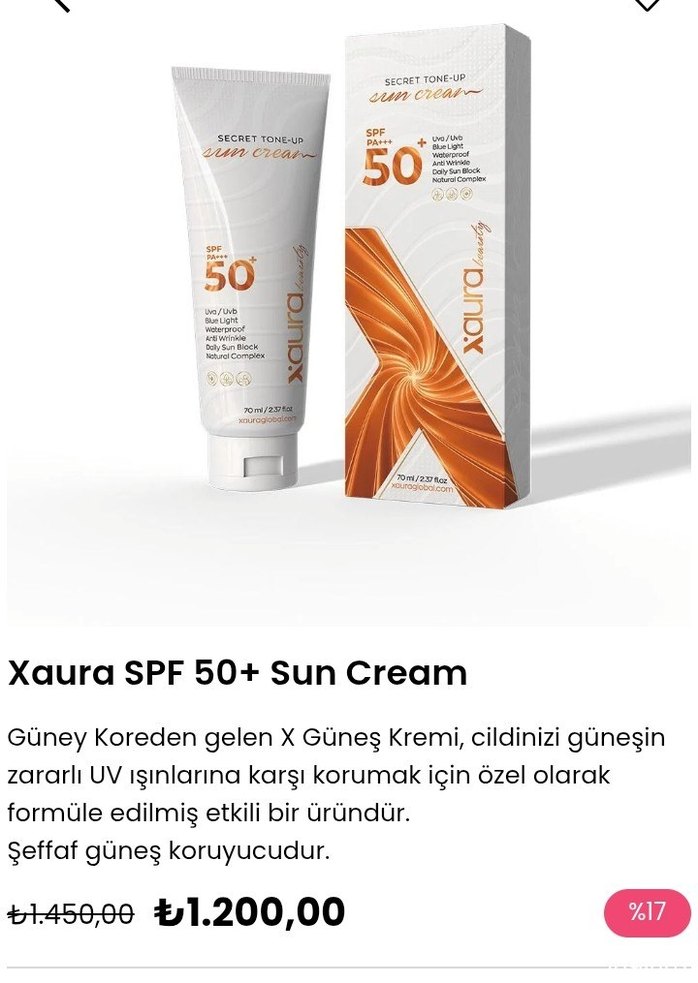 Güney Koreden gelen Xaura SPF 50+ şeffaf güneş kremi, zararlı UV ışınlarına karşı etkili koruma sağlar. Cildi koruyan hafif ve saydam formüle sahiptir.