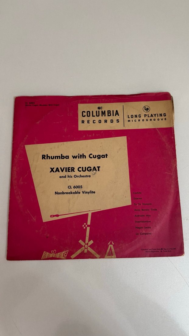 Columbia Records'tan Xavier Cugat ve orkestrasının rhumba müziğiyle dolu, uzun çalabilen kırılmaz vinil plağıdır.