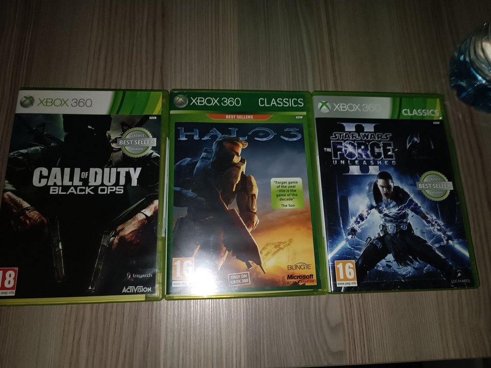 Call Of Duty Black Ops,Halo 3,Star Wars Force Unleashed 2 oyunları kılcal çizikler var fakat çalışır durumdalar sorunları yok. Halo 3 posteri biraz yırtıktır.