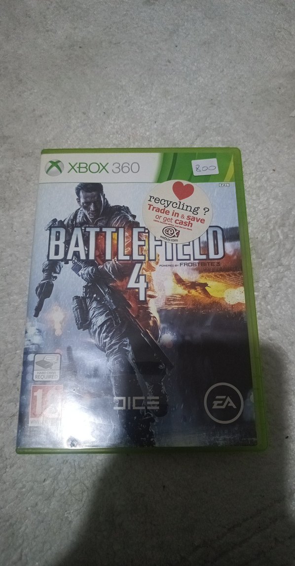 Xbox 360 için Battlefield 4, detaylı grafikler ve dinamik oynanış ile yoğun askeri çatışmalar sunar. Kutuda geri dönüşüm ve takas etiketi bulunur.