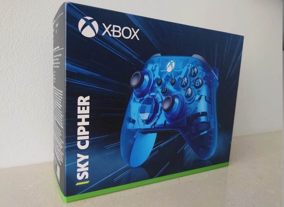 Amazon Almanya faturalı 1.5 yıllık Xbox Sky Cipher kablosuz oyun kumandası, şeffaf mavi tasarımı ve ergonomik tutuşları ile konforlu oyun deneyimi sunar.
