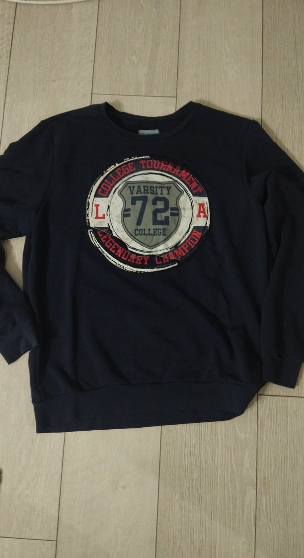 unisex için bol kesim, bisiklet yaka ve uzun kollu sweatshirt. "72, COLLEGE, VARSITY" baskılı ve kemerli detaylı. Yumuşak ve sıcak kumaştan, koyu gri renkte.