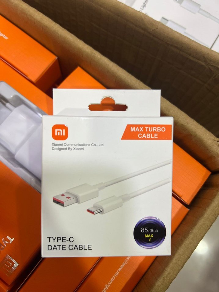 Xiaomi beyaz Type-C veri kablosu, Max Turbo özellikli hızlı şarj ve veri aktarımı sağlar. Uzunluk yaklaşık 85,3 cm. ⚡