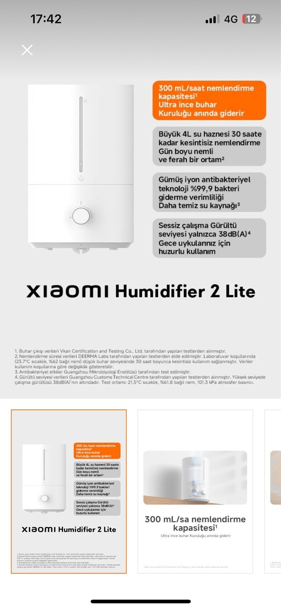 Xiaomi Humidifier 2 Lite, 4L su haznesi ile 30 saate kadar kesintisiz nemlendirme sağlar. %99,9 bakteri giderme teknolojisi ve sessiz çalışma ile huzurlu kullanım sunar. Sadece 2 gün kullanılmıştır. Garantili ve kutulu olarak gönderilecektir. 26 ocakta satın alındı. İhtiyaç kalmadığı için satıyorum.