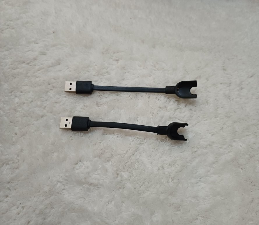 İki adet siyah USB şarj kablosu, uçlarında cihaz bağlantısı için özel klips tasarımı bulunur. Kompakt ve taşınabilir. 2 ürün de birlikte gönderilecektir.
