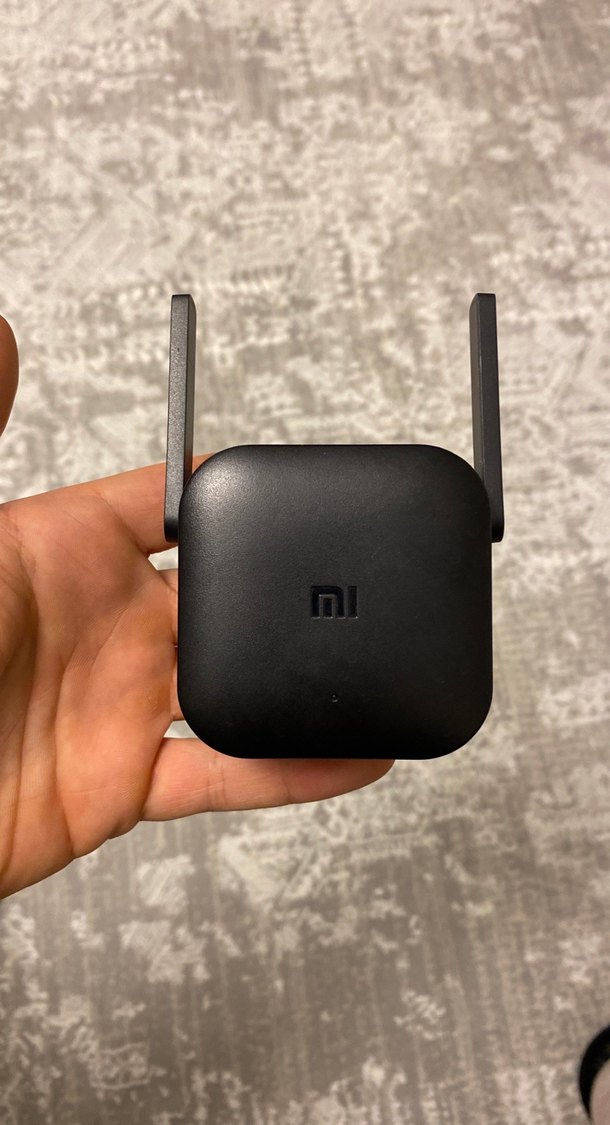 Xiaomi siyah renkli modem genişletici, sorunsuz çalışmaktadır.