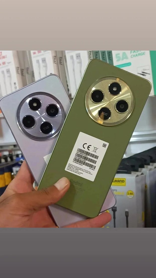 Xiaomi Redmi Android telefonlar, gri ve haki renk seçenekleriyle, yuvarlak üçlü kamera modülüne sahiptir.
