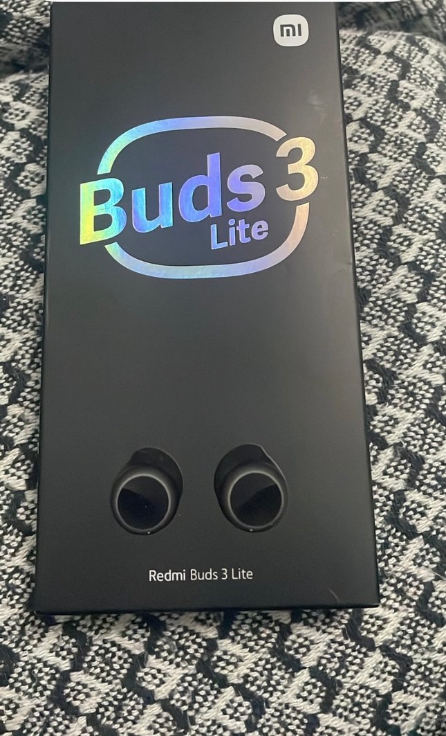 Xiaomi Redmi Buds 3 Lite kablosuz kulaklıklar siyah renkte, orijinal kutusunda. Hafif ve kompakt tasarıma sahip.