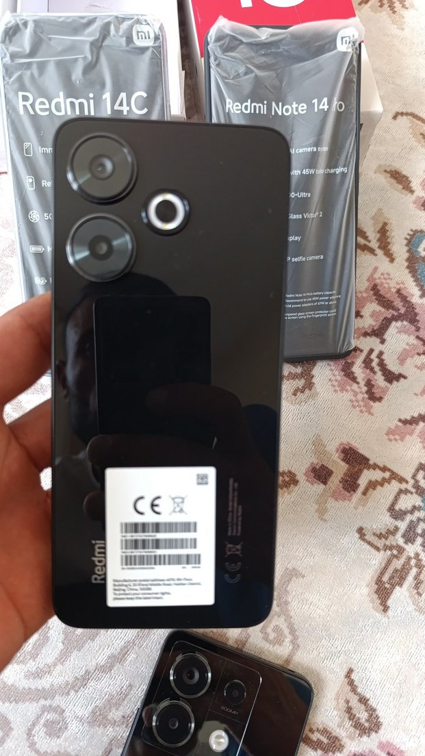 Xiaomi Redmi Note 14 siyah renkte, çift kamera sistemi ve şık tasarıma sahip. CE sertifikalı, güvenilir performans sunar.