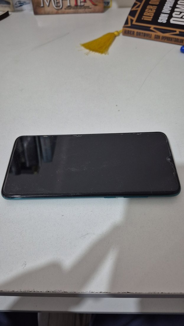 Turkuaz renkli, tam dokunmatik ekranlı koyu tonlarda Android telefon. Cihaz yatay konumda, şık ve modern tasarımıyla dikkat çekiyor. İşlemcisi sıkıntılı. Cihaz açılmıyor