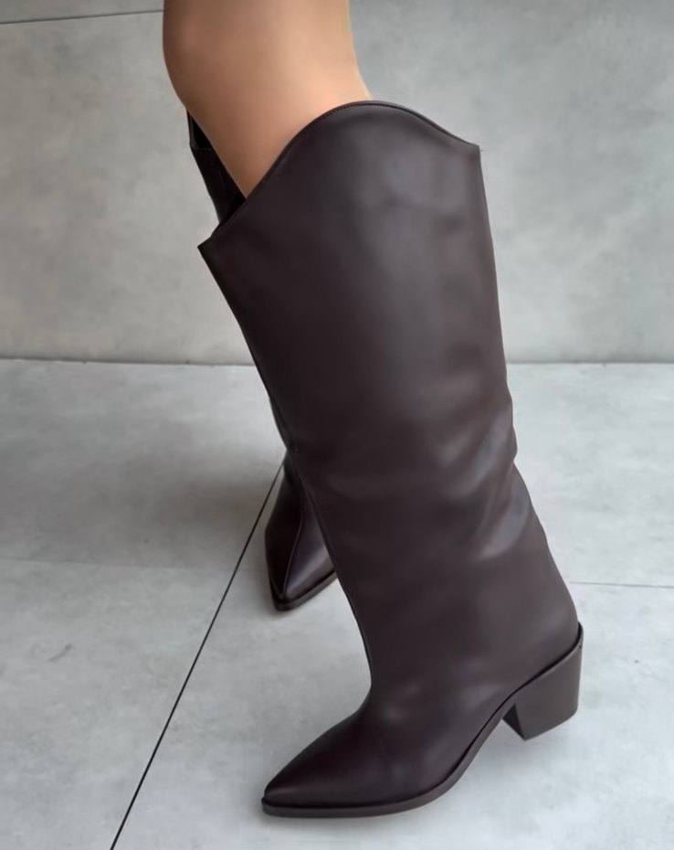 Xl geniş baldırlı acı kahve rengi kadın çizme