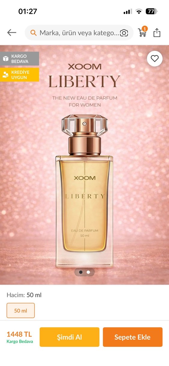 hiç kullanmadım Xoom Liberty kadın parfümü, 50 ml hacmiyle taze ve zarif bir koku sunar. Eau de parfum formülüdür.