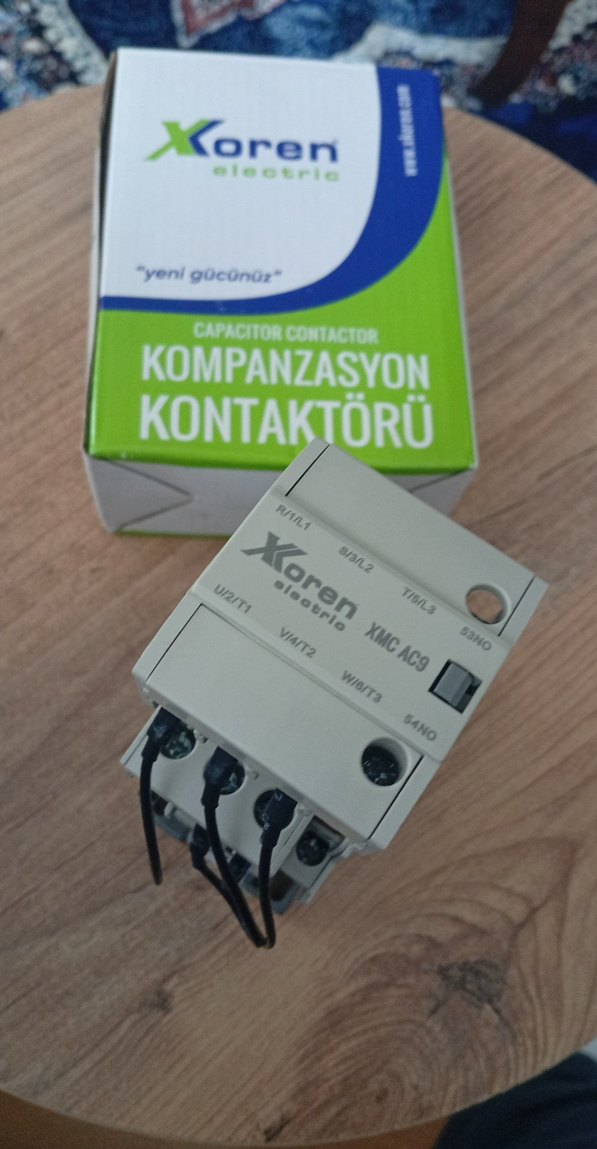 Xoren marka gri ve beyaz renkli kapasitör kontaktörü, elektrik kompanzasyonu için tasarlanmıştır. Etiketli terminaller ve kompakt yapıya sahiptir. ⚡