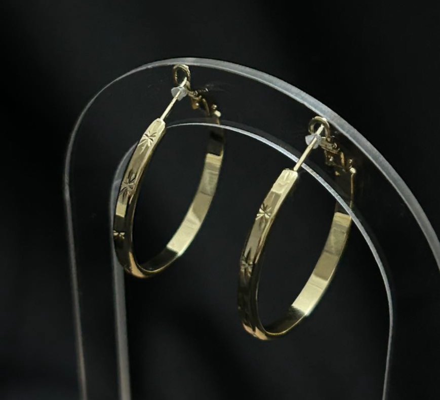 XP Damgalı Klasik Desenli Altın Kaplama Halka Küpe