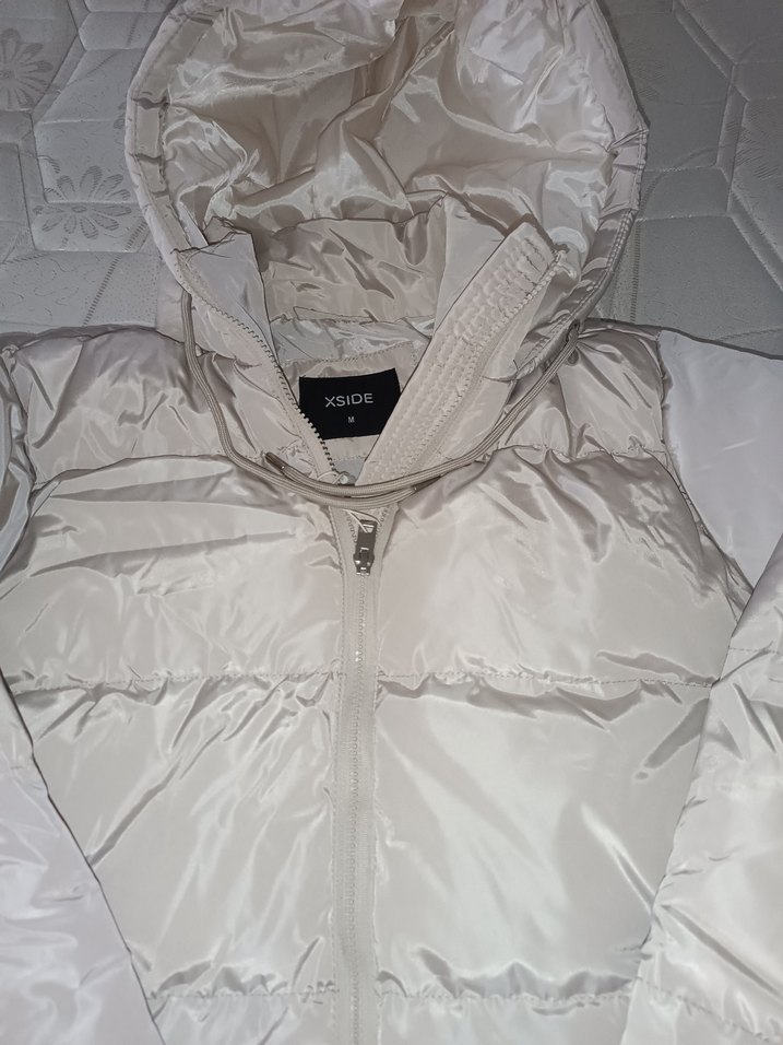 XSIDE markalı, yüksek yakalı ve fermuarlı beyaz kadın kışlık mont. Sentetik kumaştan, sokak stili ve rahat kesimli, dış mekan kullanımı için ideal. ciddi alıcılar olursa indirim yapabilirim