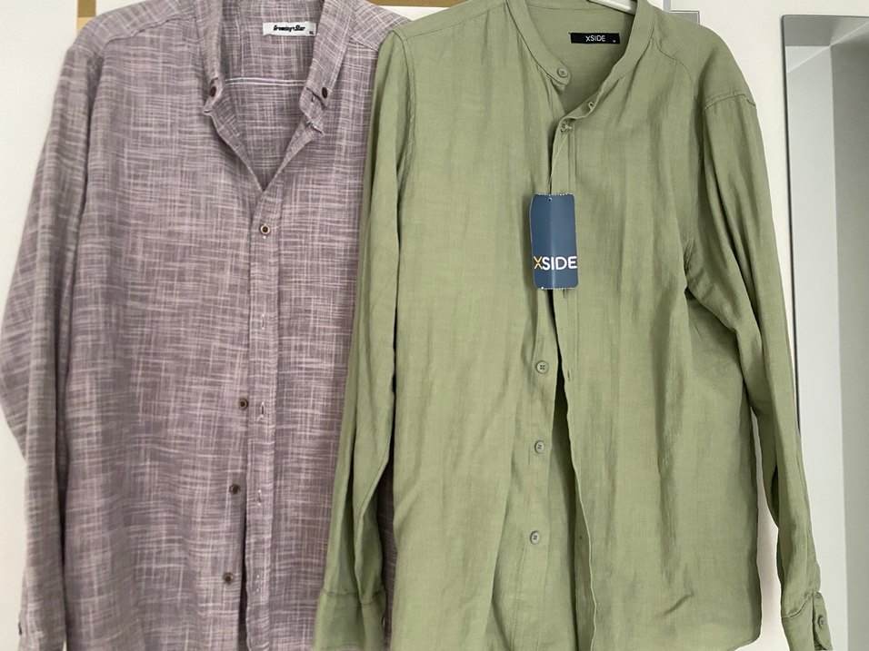 XSIDE erkek keten gömlek, düğmeli ve kesik yakalıdır. Haki renk ve baskılı desene sahiptir. Uzun kollu ve regular fit, rahat sokak stili için uygundur.