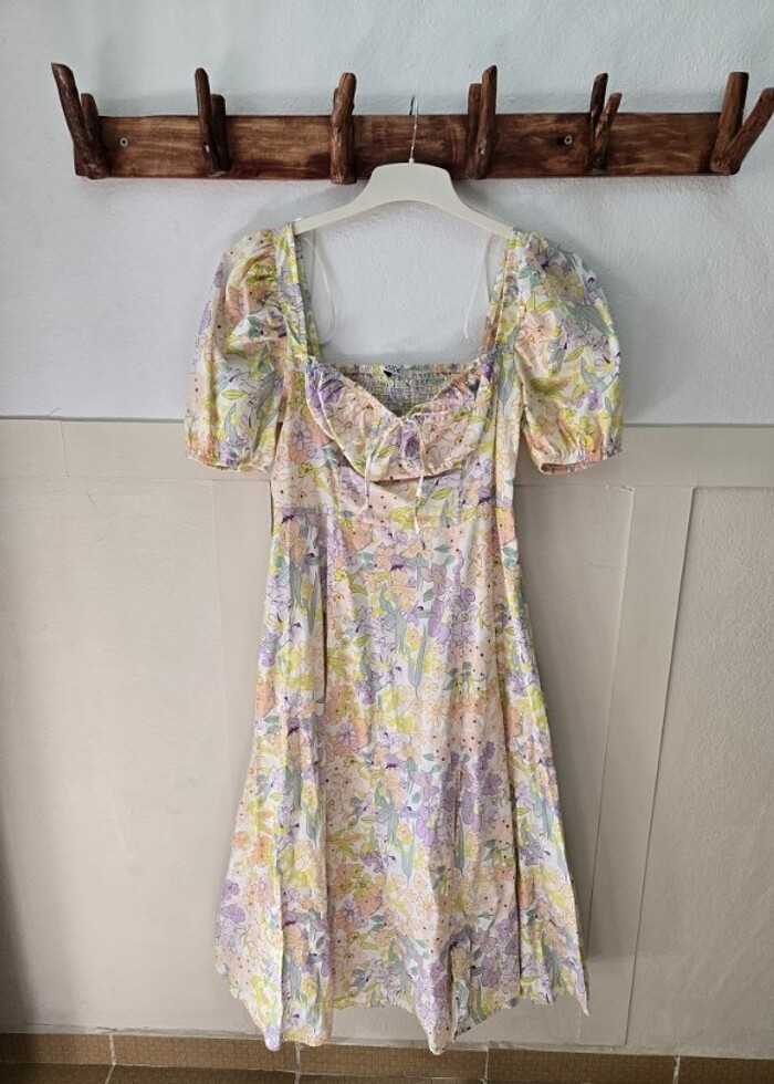 Önden yırtmaçlı midi boy gögüsünden baglamali karpuz kol elbise