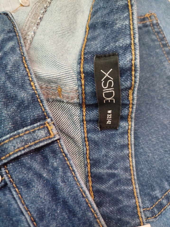 XSIDE markalı, mavi baskılı kumaştan, fermuarlı ve rahat kesim kadın jean, günlük rahat sokak stili için uygundur.