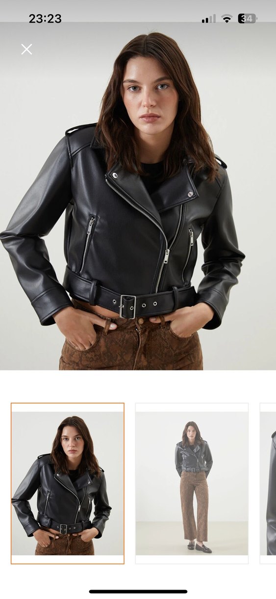XSIDE markalı siyah deri biker ceket, fitted kesim, çıtçıtlı notched yaka ve çoklu fermuarlı ceplere sahiptir. Strappy kollu, gündelik kullanıma uygun grunge punk tarzında. Belli olmayan ufak çizikler var sona ekledim makul tekliflere açığım