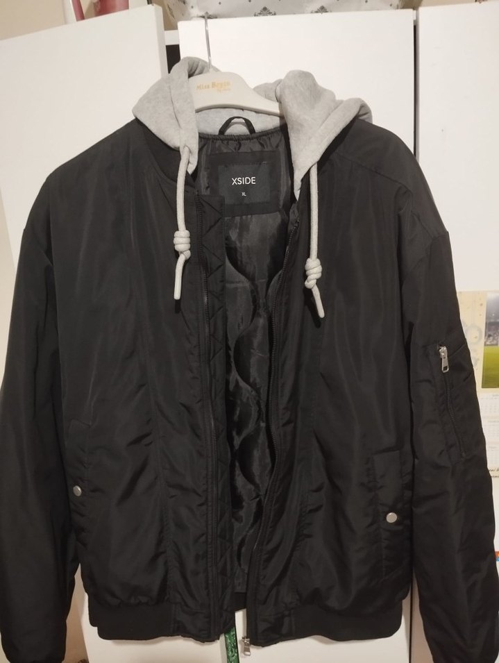 XSIDE markalı siyah, kapüşonlu, uzun kollu, fermuarlı erkek yağmurluğu, bol kesimiyle günlük rahat kullanıma uygundur. ️