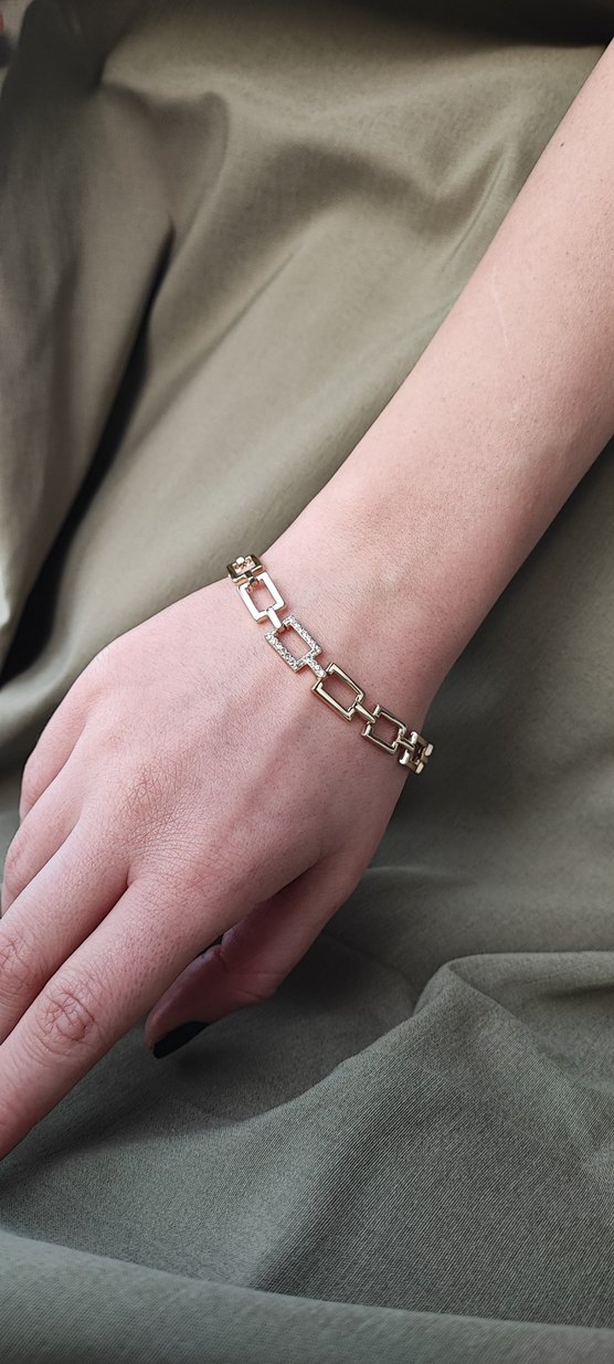 Zincir detaylı, açık altın renkli, klasik ve minimalist stile uygun kadın bileklik. ✨ kararma yapmaz