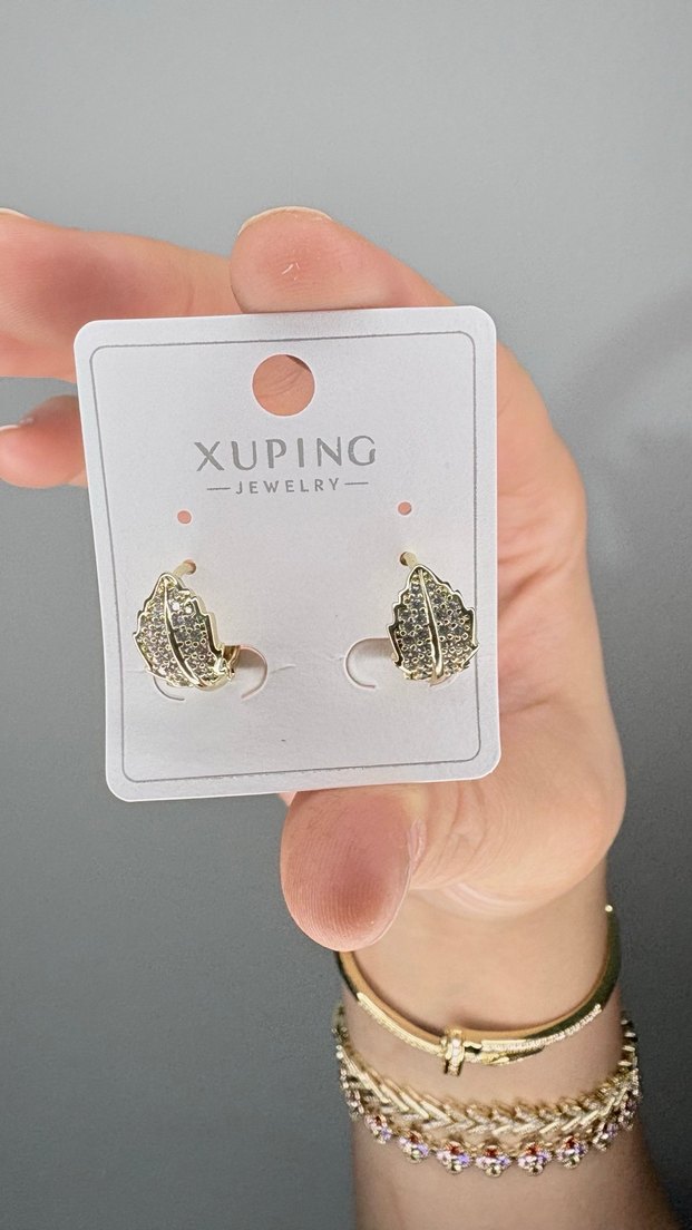 Xuping Altın renginde, Yaprak detaylı mini küpeler. Günlük kullanım için uygun, çağdaş ve minimalist tarzda, yazılı desenlidir. Xuping Jewelry markası. #xuping #takı #çelik #kadın #bileklik #kolye #küpe #yüzük