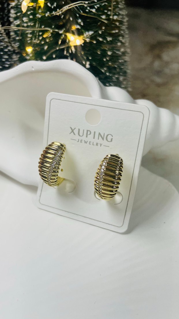 Xuping altın renk mini küpeler, parlak finisajlı pliseli ve çizgili tasarıma sahip, günlük şıklık için modern klasik görünüm sunar. ✨