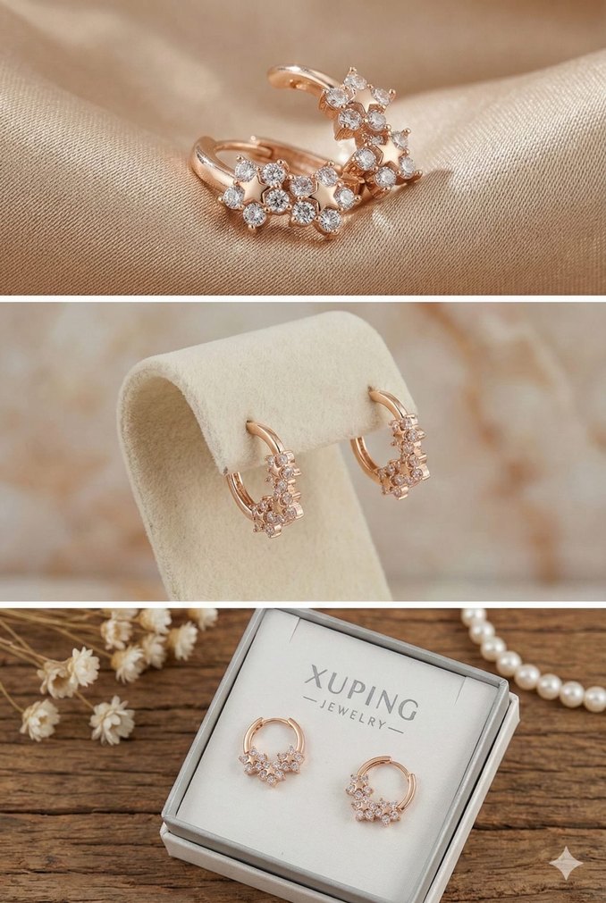 Xuping rose gold taşlı çiçek desenli modern klasik küpeler.