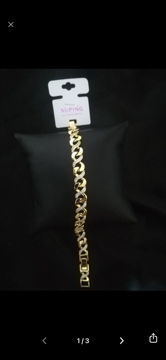 Xuping altın renkli bileklik, zincir detaylı tasarımı ve parlak yılan desenli dokusuyla, trend günlük kullanıma uygundur. ✨