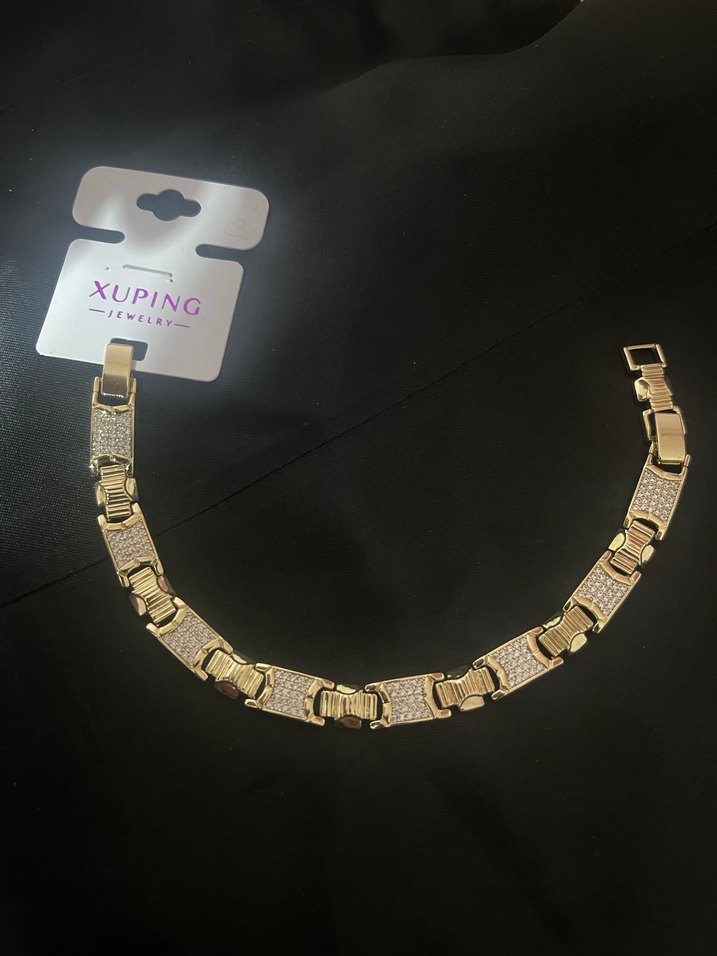 Xuping altın renkli bileklik zincir detaylı ve parlak yüzeye sahip, yılan desenli, günlük sokak stiline uygun.