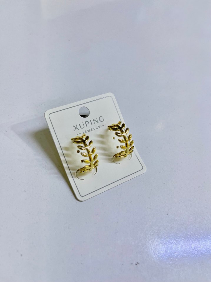 Xuping markalı, altın renkli, kısa uzunlukta boncuklu yaprak desenli küpeler, günlük kullanım için minimalist ve çağdaş tarzda.