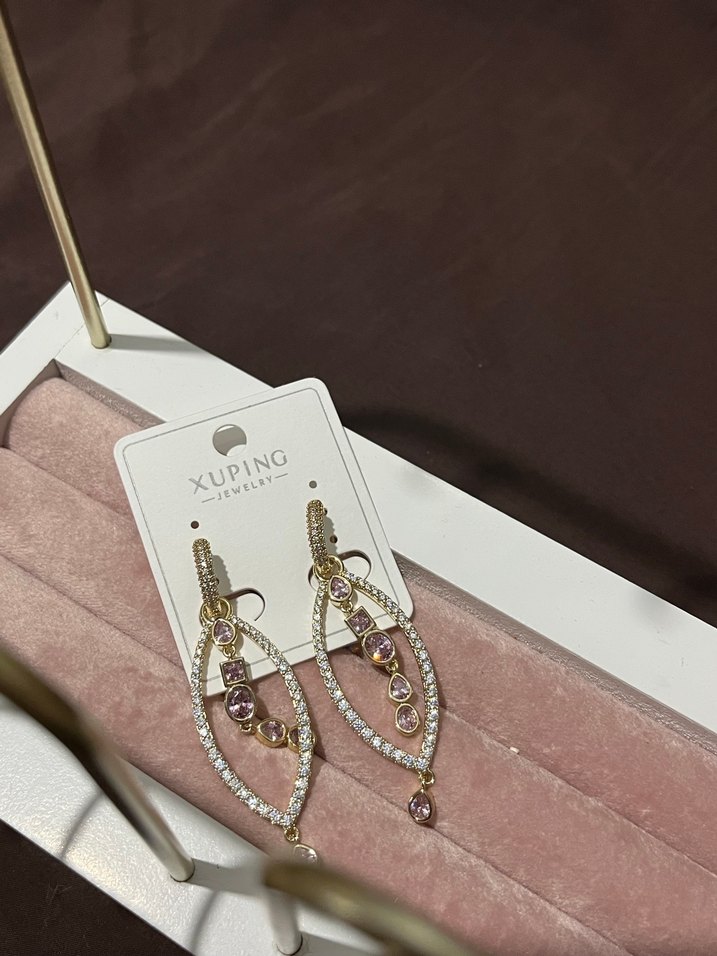 Xuping markalı, altın renkli, uzun boyda payetli ve baskılı bohem tarzda küpeler, düğün ve klasik şıklık için uygundur. ✨