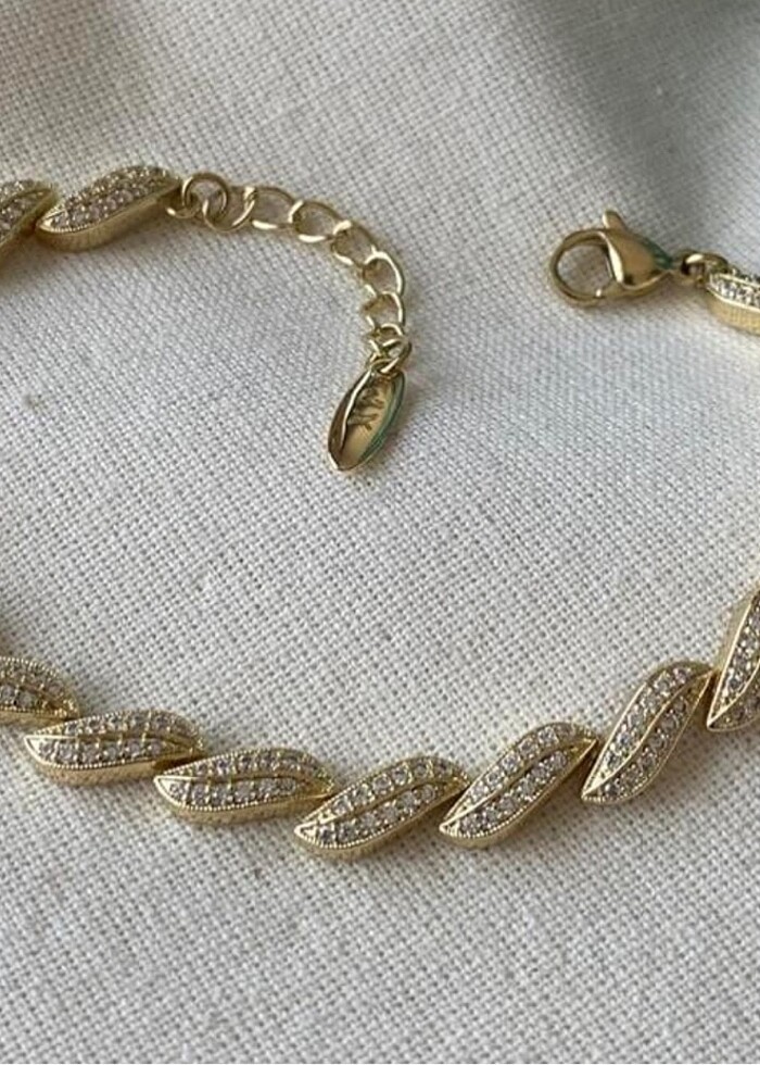 Kuyumcu işçiliği 14k renginde çelik taşlı bileklik