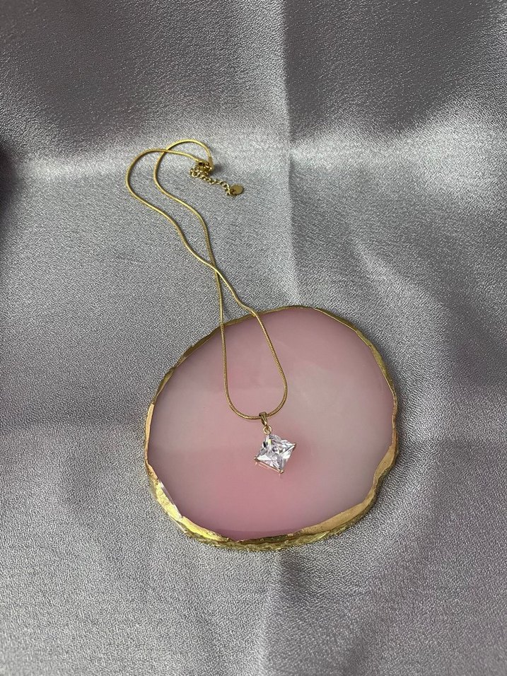 Altın renkli, zincir detaylı ve yılan desenli kolye, modern klasik tarzda, düğünler için zarif ve şık bir seçimdir. Normal uzunluktadır.