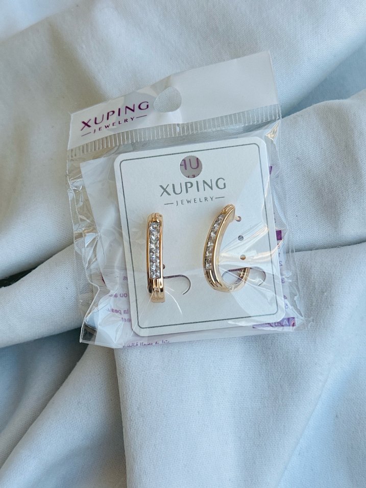 Xuping mini altın renkli, payet detaylı kısa küpeler, günlük kullanım için minimalist ve klasik sokak tarzı sunar. ✨