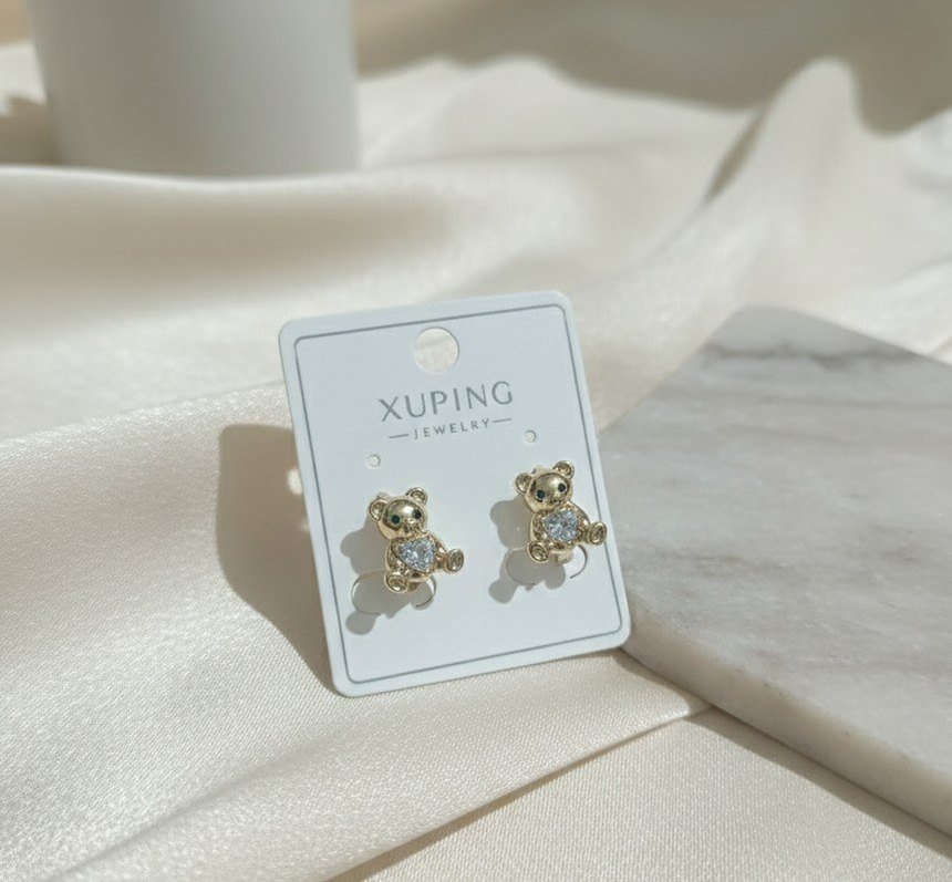 Xuping Mini Ayıcık Figürlü Altın Renk Küpe Çocuk