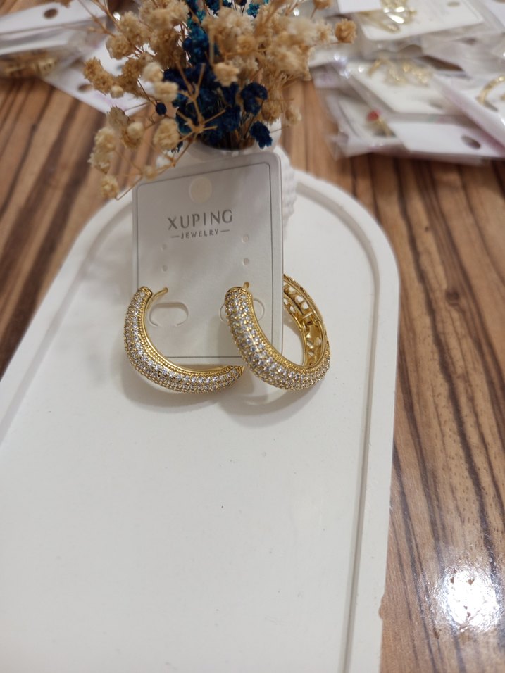 Xuping markalı mini uzunlukta, boncuk detaylı altın küpeler. Modern klasik tarzda, düğün ve özel günler için uygun. ✨