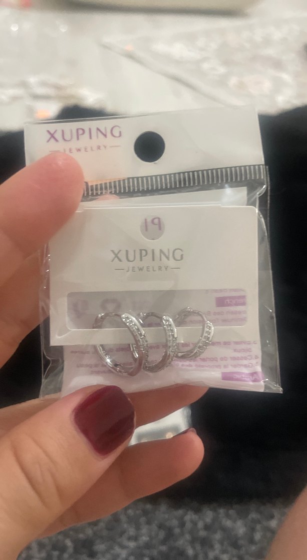 Xuping mini halka küpeler, gümüş renkli ve payet detaylı, trend sokak stiline uygun kısa uzunlukta.