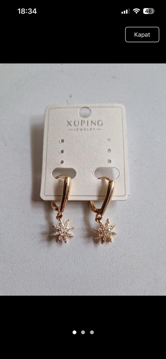 Parlak altın renkli, kısa uzunlukta ve payetli yıldız figürlü minimal küpeler. Hem sokak modasına hem de düğünlere uygun.