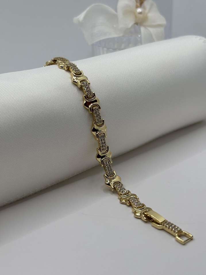 Parlak altın renkte, zincir detaylı ve yılan desenli bu bileklik, klasik zarafetle modern ve göz alıcı bir stil sunar, günlük kullanıma uygundur.