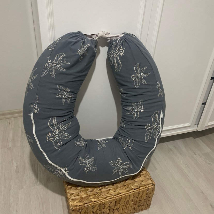 Normalde kılıfsız bir ürün ben yıkaması zor olur diye fermuarlı çıkabilen bir kılıf diktirdim onunla birlikte vereceğim.Emzirme sürecinden sonra bebeğin oturmaya alışma süreci için içerisine oturtabiliyorsunuz destek veren bir ürün. Gri renkte, yaprak desenli hamile ve emzirme yastığıdır. Rahatlık ve destek sağlar.