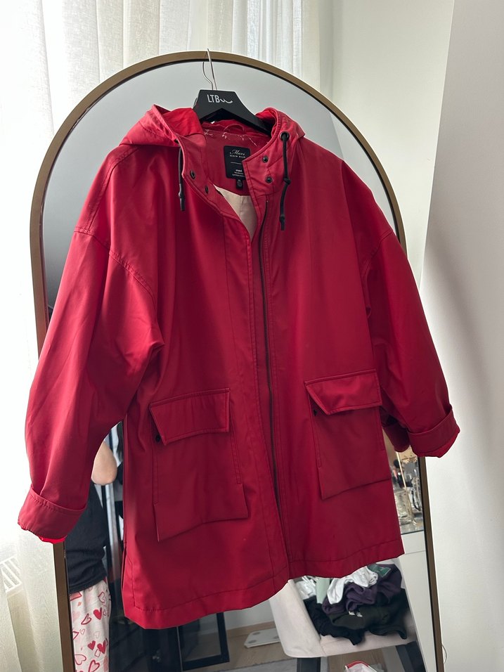 xs beden ama oversize kesim askıda beklemekten ötürü askıya yapışan kısımlar var ama giyince görünmez. az kullanıldı