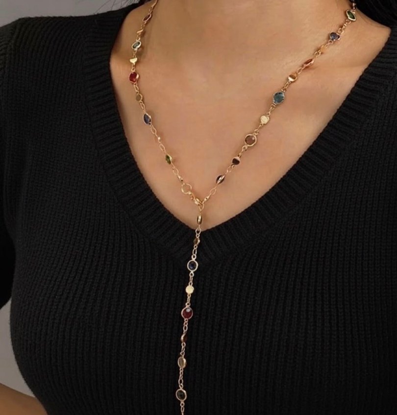 Altın rengarenk taşlı kadın minimalist tarzda günlük sokak giyimine uygun. ✨