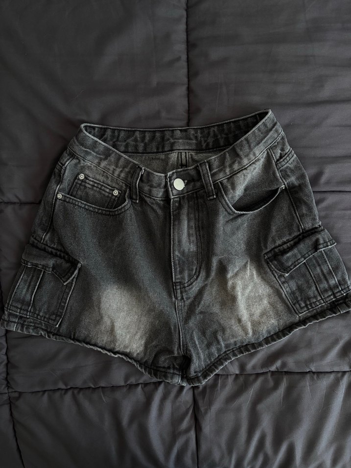 y2k punk antrasit yıkamalı mini şort
