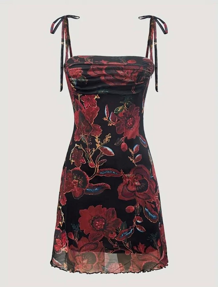 y2k Bordo Çiçek Desenli mini elbise vintage american