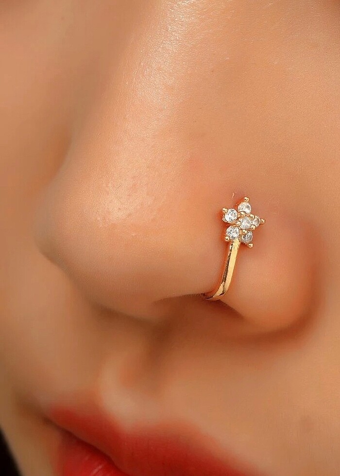 Y2k Çiçekli Taşlı Burun Hızma Aksesuar